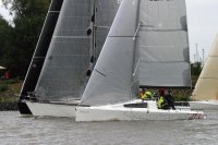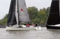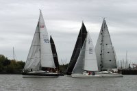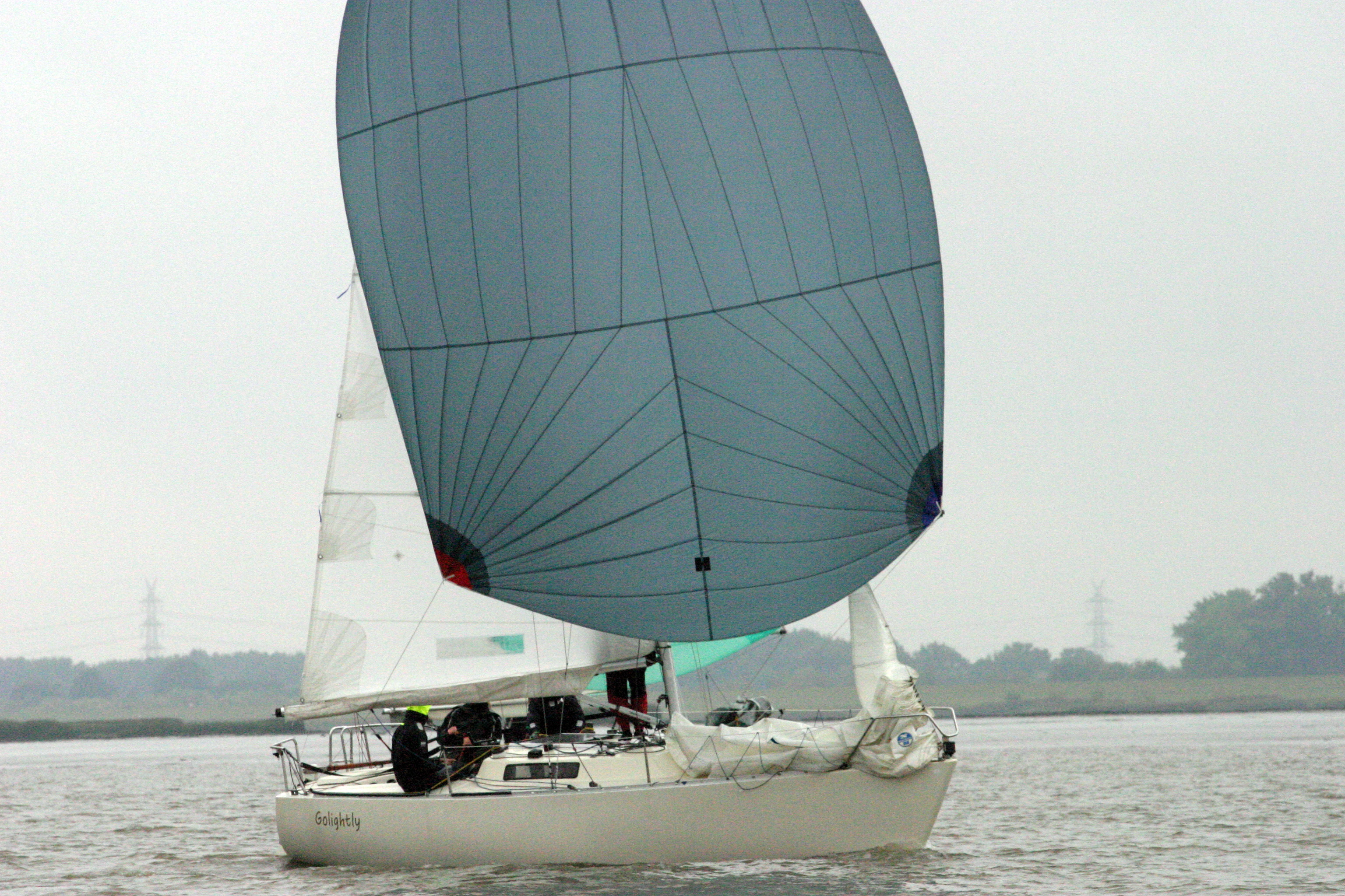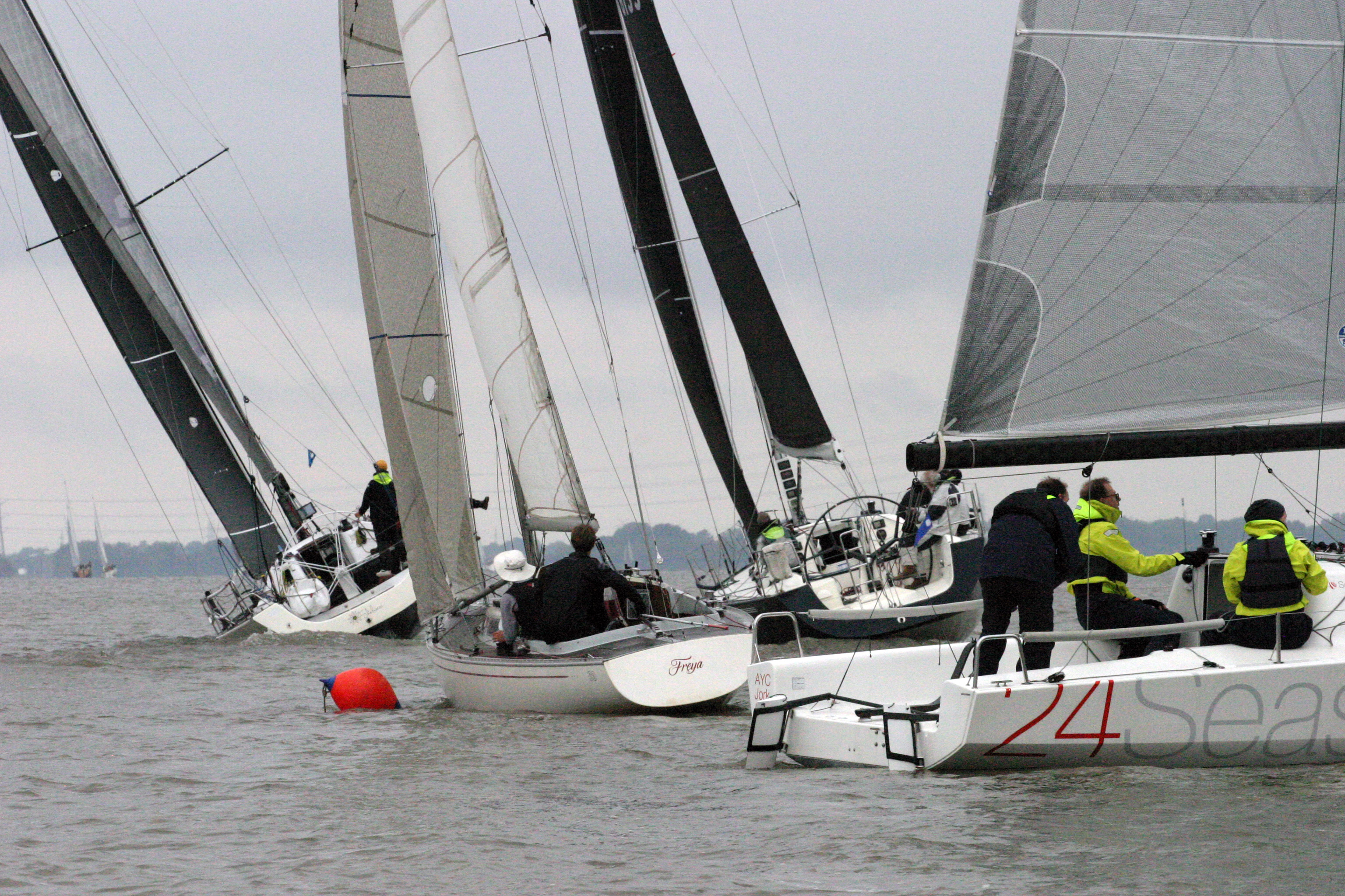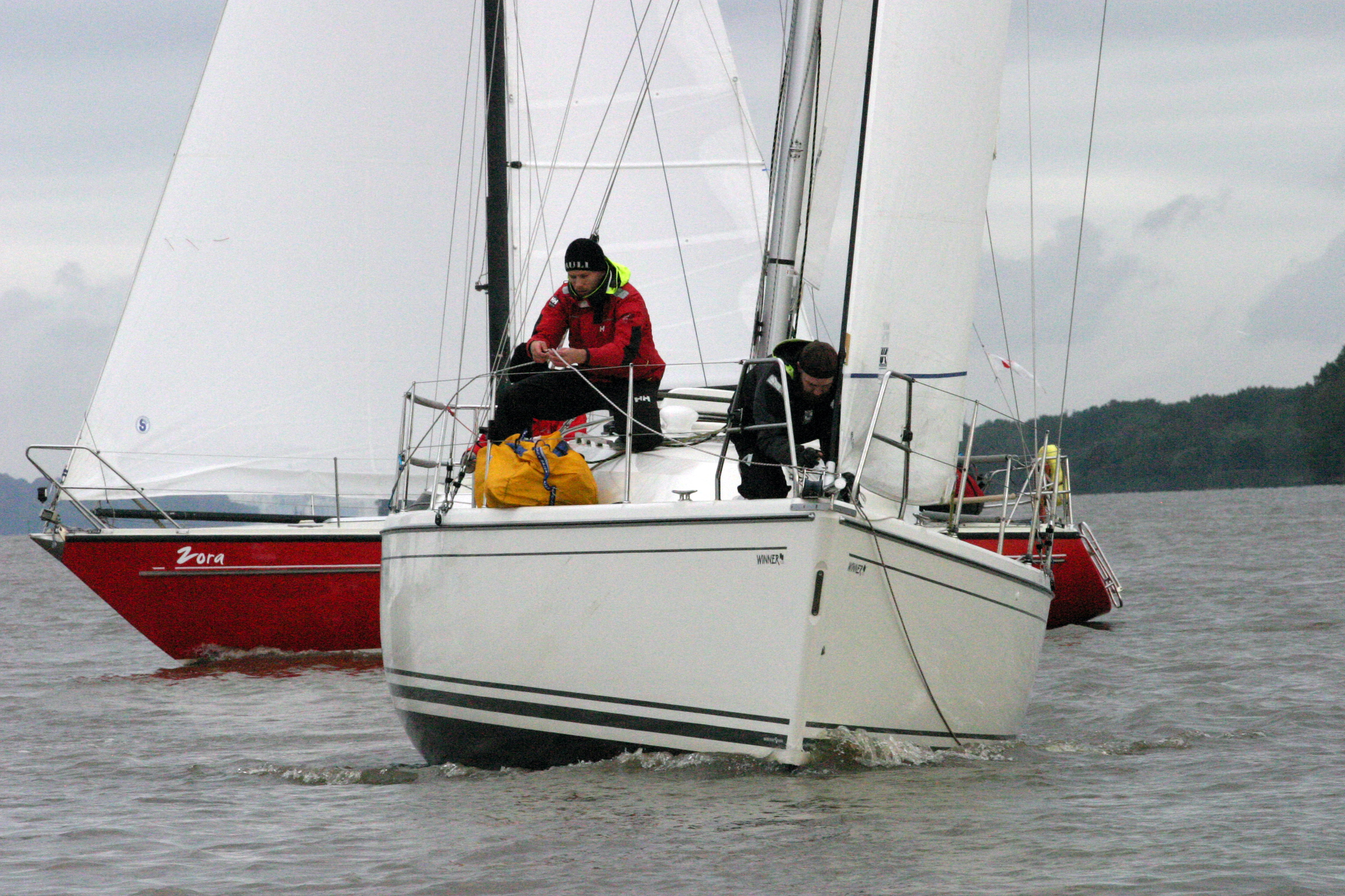 Am Sonntag den 25. September stand unsere Elbe-Ausklang Regatta auf dem Terminkalender. Wer die Fotos von Kay Rothenburg anguckt, könnte meinen es sei keine schöne Regatta gewesen. Alles grau in grau. Trotzdem hatten sich 24 Yachten angemeldet, von denen auch 23 um 11:30 Uhr auf die Bahn gingen. Bei leichtem Nordwestwind und geringer Ebbeströmung war die kurze Bahn von vielen schnell abgesegelt. Die langsameren Boote hatten allerdings mit am Ende schwächerem Wind und bereits stärkerer Flutströmung zu kämpfen, und so zogen sich die Zieldurchgänge über eine Stunde hin. Hierbei gab es wieder etwas zu lernen: Die Begrenzungstonne am Ziel, beim ersten Zieldurchgang noch unter dem Einfluss der letzten Ebbeströmung ganz in der Nähe der Peilung (Ziellinie), lag bei späteren Zieldurchgängen bei Flutströmung weiter stromauf. Einige Teilnehmer nahmen die Tonne und wähnten sich im Ziel. In den Segelanweisungen stand aber: „Ziellinie: vor der Westmole des Hamburger Yachthafens in Wedel in Peilung der dort aufgestellten Dreiecke. Sie kann südlich durch eine Regattatonne oder ein Zielschiff, das nicht in Peilung der Dreiecke liegen muss, begrenzt werden.“ Diese Tonne zeigt also nur die Länge der Ziellinie vom Ufer aus an. Man muss sie noch nicht einmal an irgendeiner Seite lassen, denn in so einem Fall ist sie keine Bahnmarke! Ein Boot der Wettfahrtleitung hat im Falle, dass man sich zu früh im Ziel wähnte nicht ganz regelkonform (Regel 41 Outside Help) darauf hingewiesen. Die Silberränge hat das nicht beeinflusst.