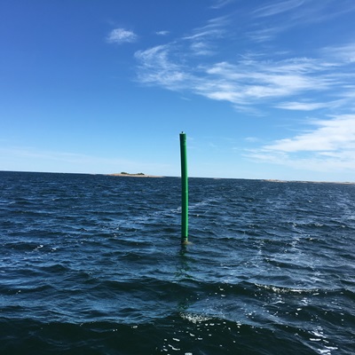Außerdem haben wir in den vergangenen Jahren festgestellt, dass es eine ganze Reihe von Untiefen in den Buchten gibt, die auf Grund von privater Initiative betonnt bzw. bezeichnet sind. Dies gilt auch für Fahrwasser mit roten bzw. grünen Tonnen und für Landmarken in Form von weißen Dreiecken.
