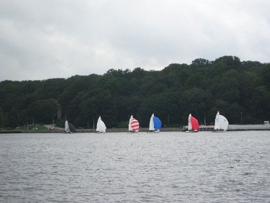Es ist schon toll, einmal eine längere Strecke unter Spi zu fahren und nicht gleich wieder das Ende der Alster erreicht zu haben, wenn man ihn gerade richtig getrimmt hat. Am Sonntag gab es dann drei Wettfahrten. Zum Glück kam nach der Flaute in der ersten Wettfahrt dann doch noch etwas Wind. So konnte uns eine Crew vom SVK zeigen, wie es richtig geht. Die hat dann auch wohlverdient gewonnen! Die Hamburger Boote belegten die Plätze 2, 4 und 5.