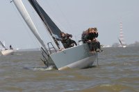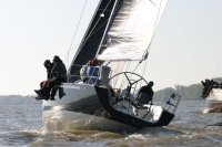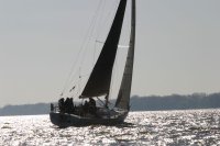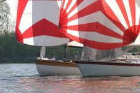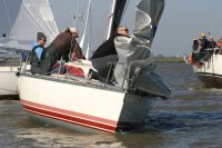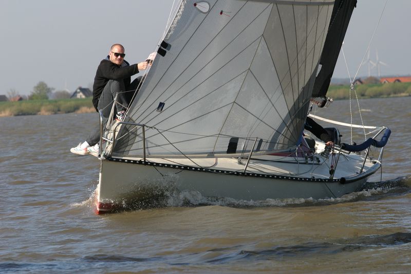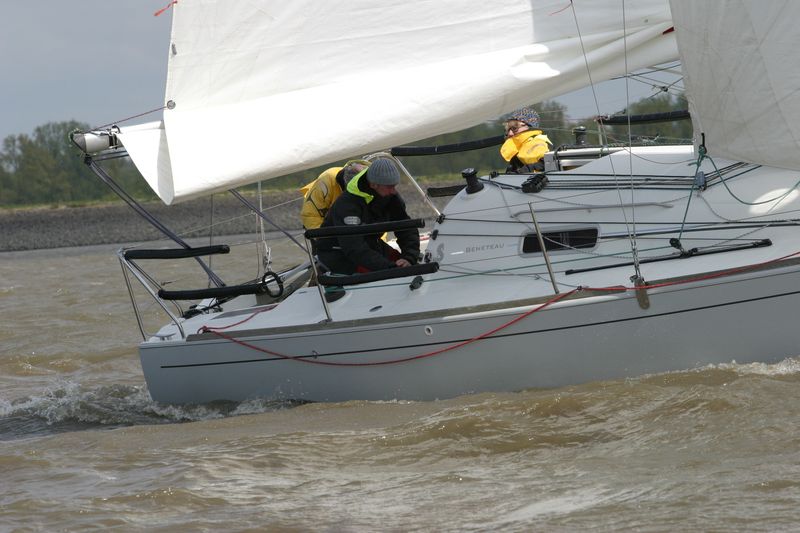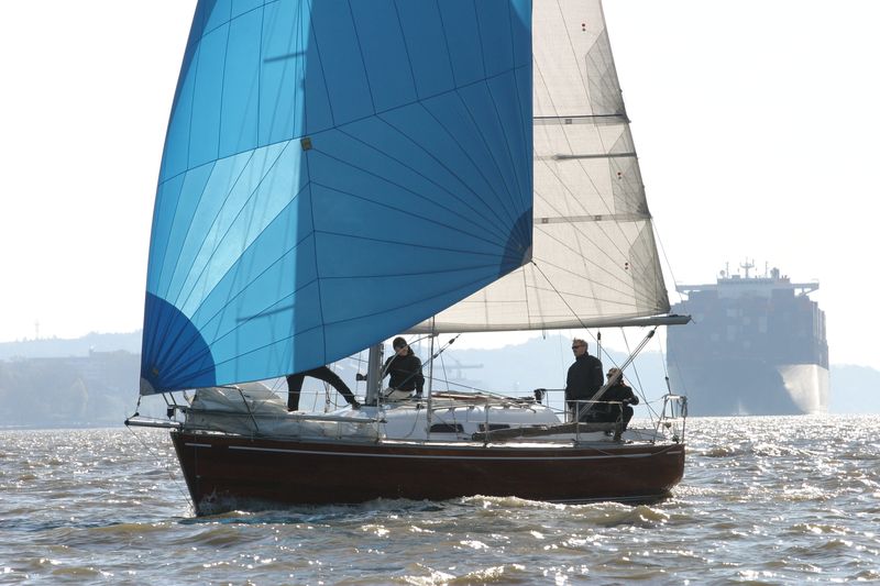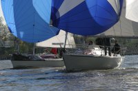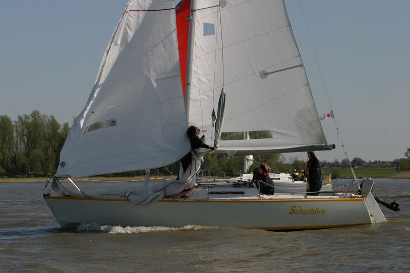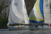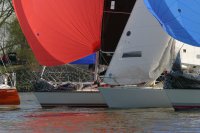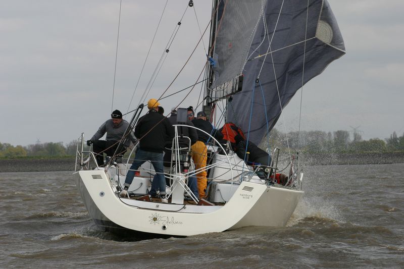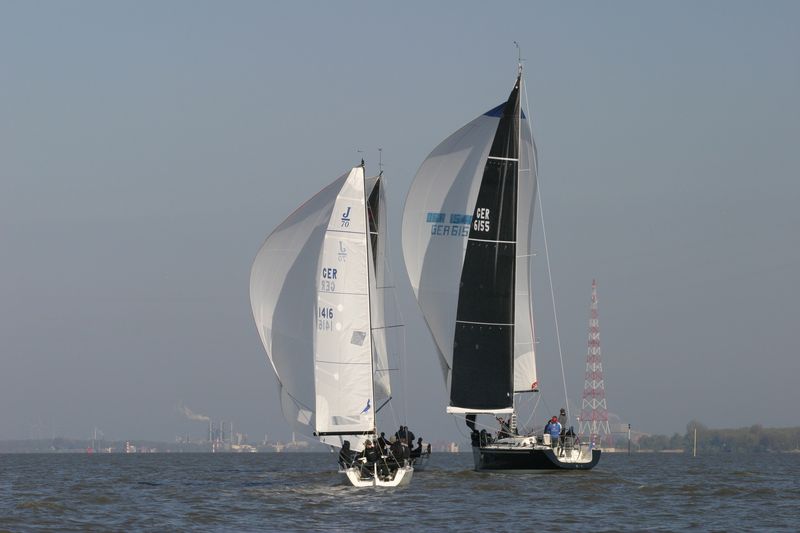 Der zweite Regattastart führte auf einen etwas komplizierteren Kurs: erst ein Stück Richtung Stade, dann zurück auf die Höhe des Yachthafens, wieder elbab zur Tonne 119, bis an die Landesgrenze nach Hamburg und zurück unter Spinnaker zum Zieleinlauf. „Christel“ gab im Laufe dieser Wettfahrt auf. „Edelweiß“ präsentierte auf der Rückfahrt den auffälligen leuchtend-gelben Gennaker – bis der plötzlich dramatisch zerriss. Zum Glück hatte die Mannschaft noch Ersatz an Bord. Beim Zieleinlauf war dieses Mal „Pax“ an der Spitze, dicht gefolgt von „Edelweiß“.