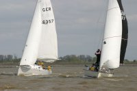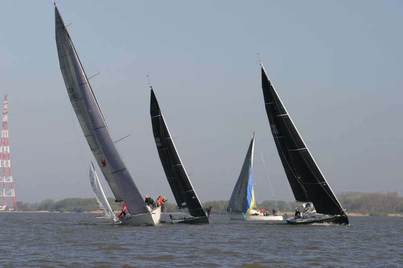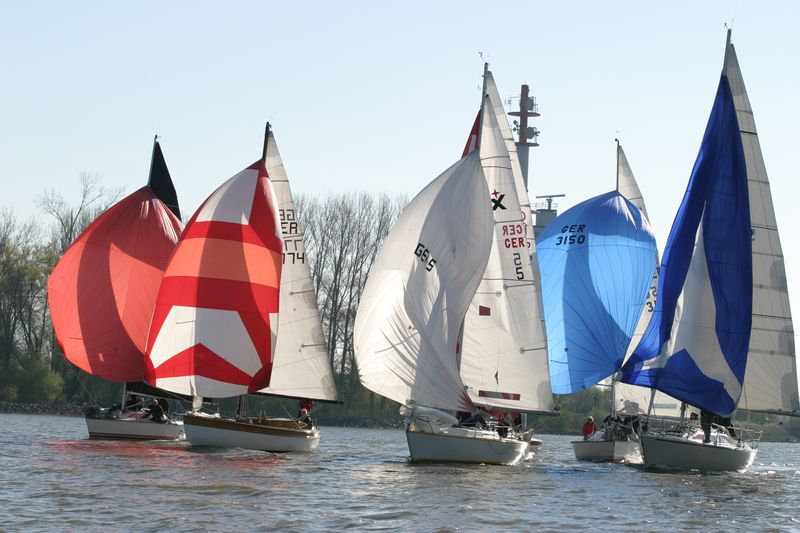 Saisonauftakt auf der Elbe vor dem Hamburger Yachthafen in Wedel und die Regatta-Bedingungen konnten besser nicht sein: strahlender Sonnenschein, der Wind angenehm stetig aus Ost mit Stärke 4 (Sonnabend) und Nord mit Stärke 5 (Sonntag), sowie ein motiviertes und engagiertes Organisationsteam rund um Ulrich Dahm, Jürgen Raddatz und Marcus Boehlich. Leider aber blieb die Zahl der teilnehmenden Boote und Besatzungen hinter früheren Jahren zurück, gerade mal 20 Boote waren am Start. Vielleicht war der erste Start am Sonnabend für einige einfach zu früh? Oder hatten zu viele Eigner es nach Corona-Infektionen nicht geschafft, die Boote rechtzeitig aufs Wasser zu bringen?
