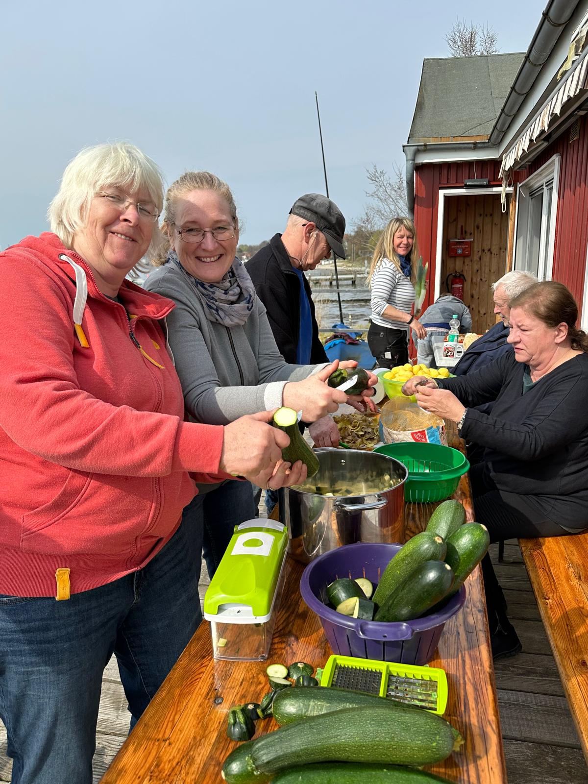 Emsige Hände der Küchen-Crew bereiteten frühmorgens herrlich frische Brötchen mit Ei und Zwiebelmett, sowie heißen Kaffee und Tee und nach getaner Arbeit gab es eine herrliche Kartoffel/ Erbsen/ Zucchini Suppe sowie Kaffee und Kuchen zum Nachtisch, das meiste vor Ort in unserer Clubhausküche zubereitet.