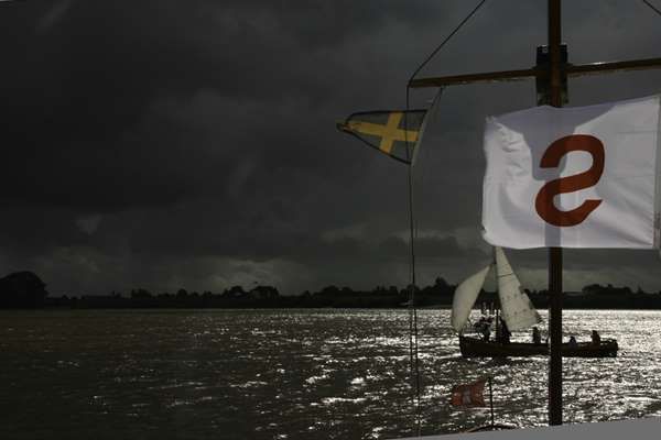 Zeit war nicht zu verlieren, da weder Tide noch der Kutterzirkus warteten. Petrus hatte auch für reichlich Wind aus West gesorgt, so dass die Wettfahrtleitung den Ehrgeiz bremste, indem sie kurzerhand nur 2 Segel zuließ, was später wieder aufgehoben werden konnte. Kuttersegler kennen die Stimmung einfach, die zum Elbe-Racen und zum Kutterzirkus gehört. Hier mussten sich 2 Crews jeweils einen Kutter mit fliegendem Wechsel teilen.