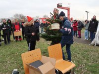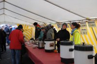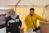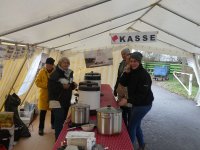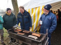 Nach dem Zeltaufbau, der Stromversorgung und dem Vorheizen des Grills konnte die Landmannschaft mit Elske, Helga, Henrike, Philippine, Hartmut, Sven und den Jugendlichen der Kuttermannschaft Teufelsbrück fleißig ab 11:00 Uhr die Besucher mit Glühwein, Würstchen, Waffeln und Suppe versorgen.