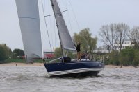 Nach einem kleinen Schlenker vor Twielenfleth segelte das Feld wieder ohne weitere Behinderungen elbauf ins Ziel vor dem Hamburger Yachthafen.